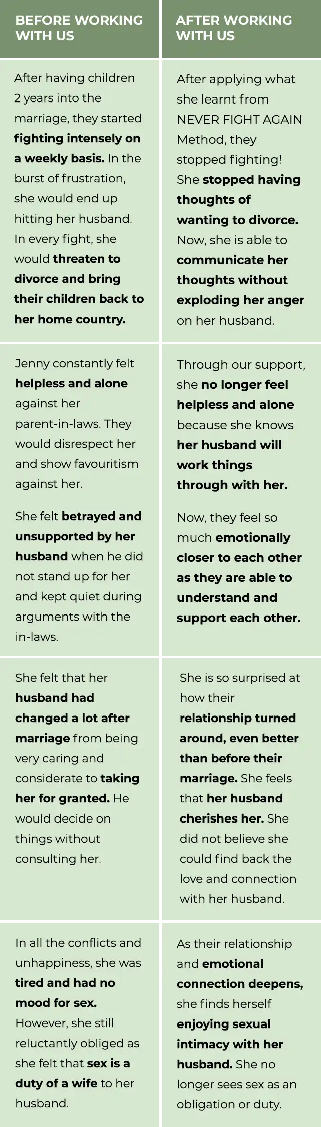 "Before, there's no point to talk and I feel alone trying to solve everything by myself. Now, I enjoy meaningful conversations and I can rely and get support from my husband!"