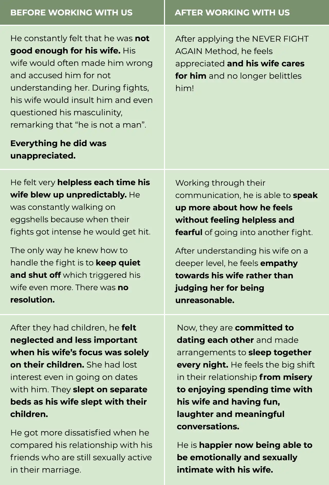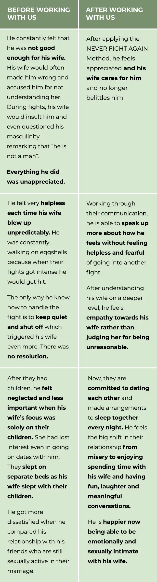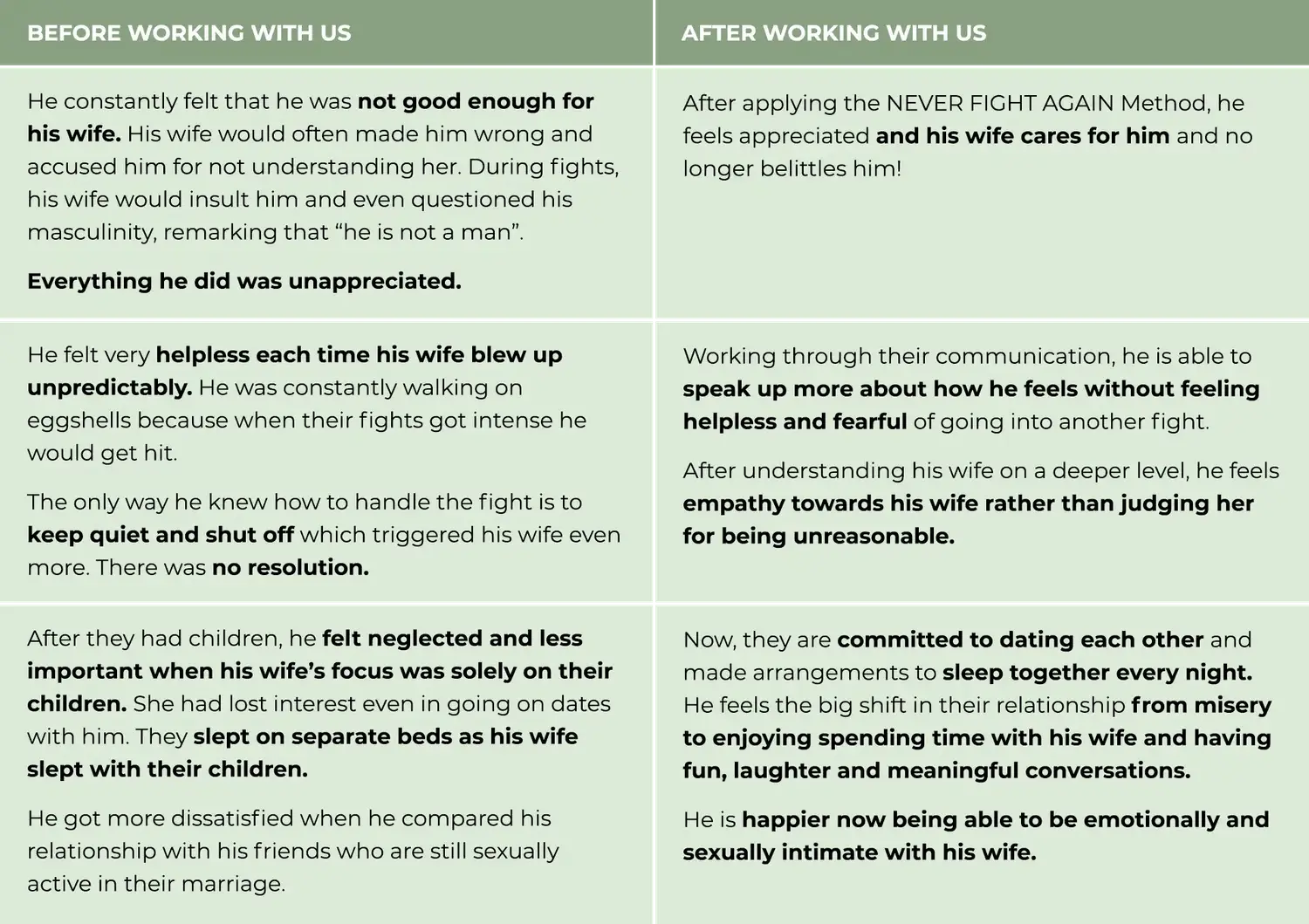 “ I’ve been on Cold War with my wife for one year. And I almost gave up on the marriage and give up totally. I didn’t realise that I am the main contributor to the marriage issues until after the program”