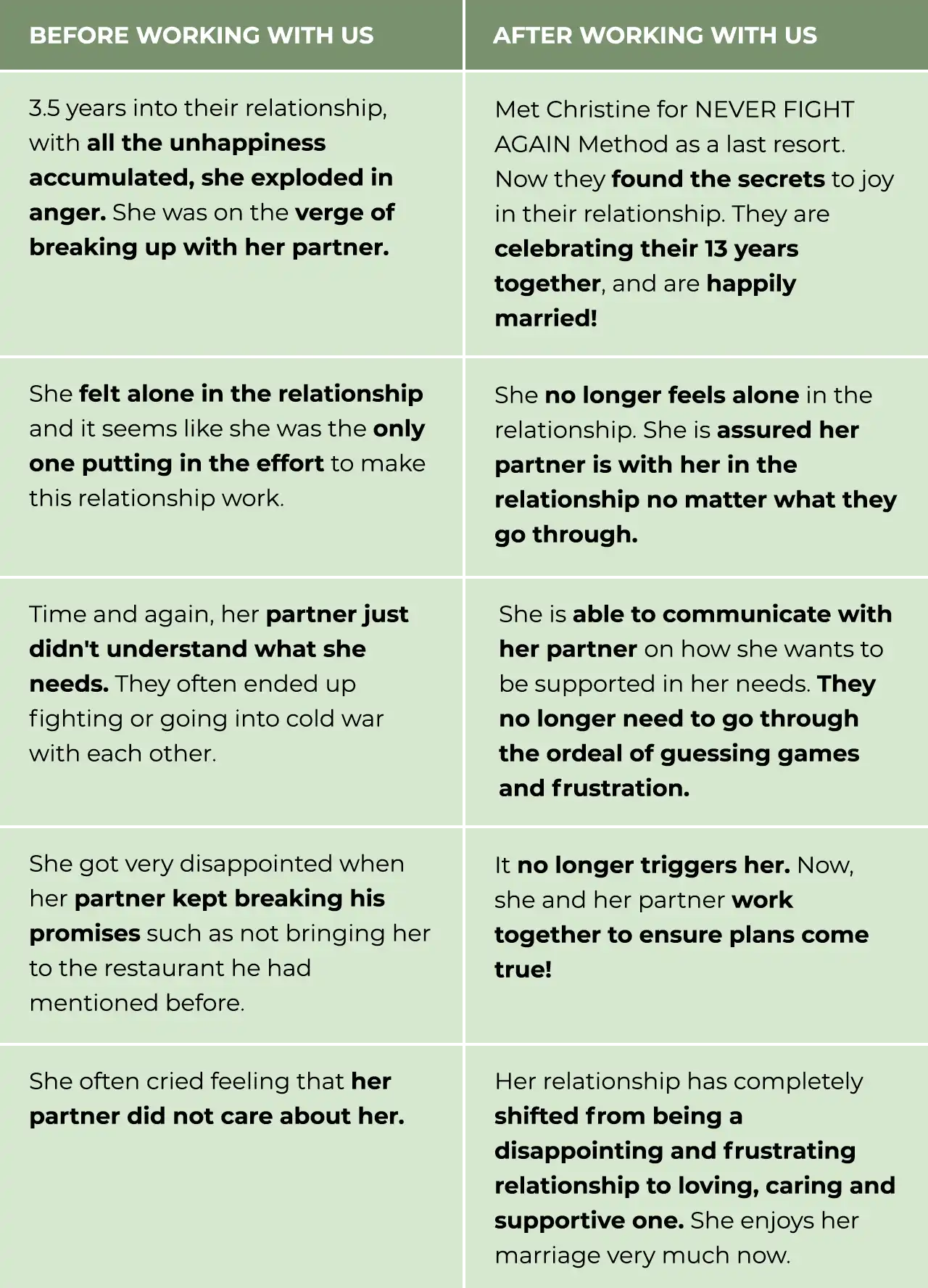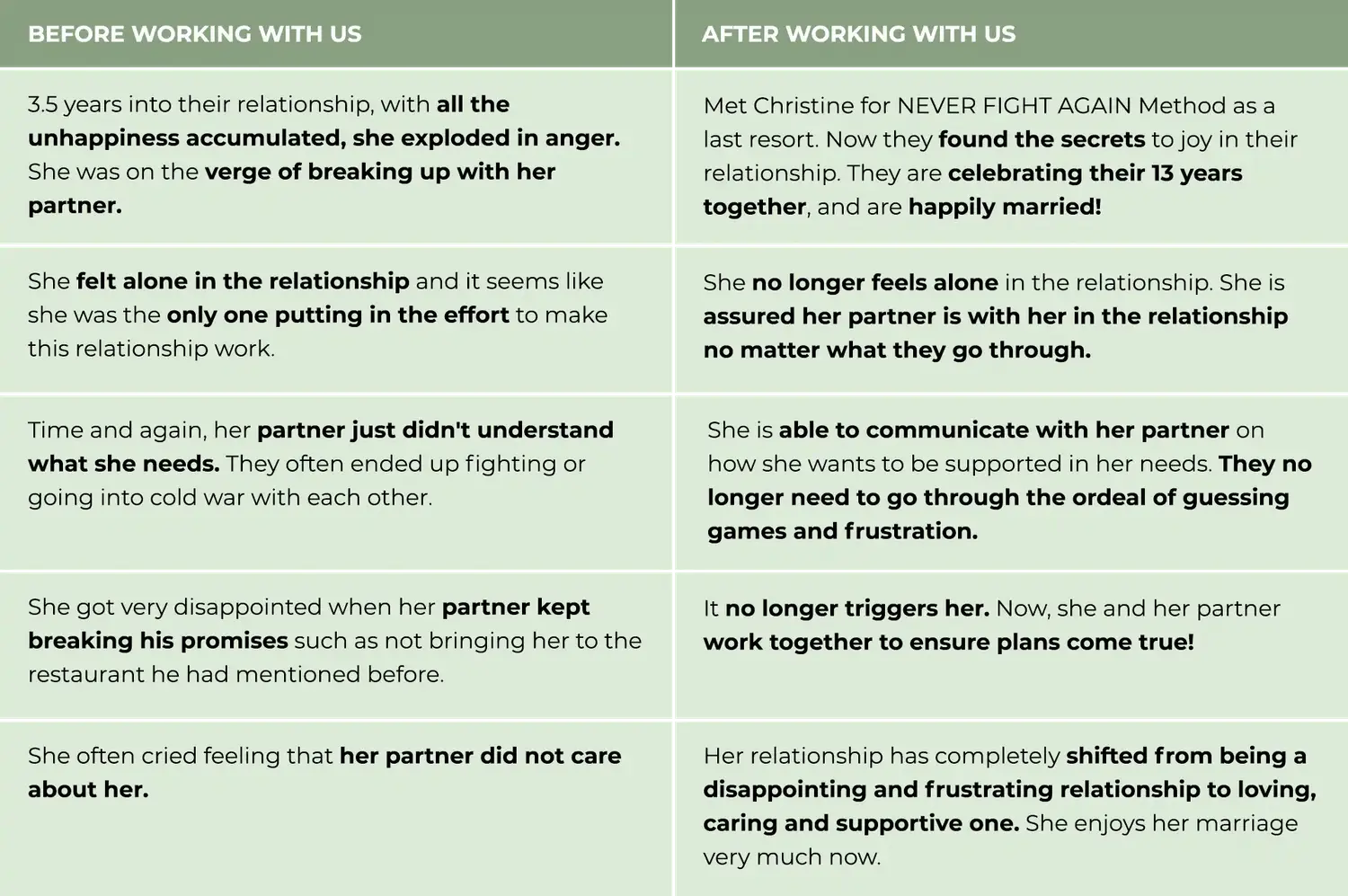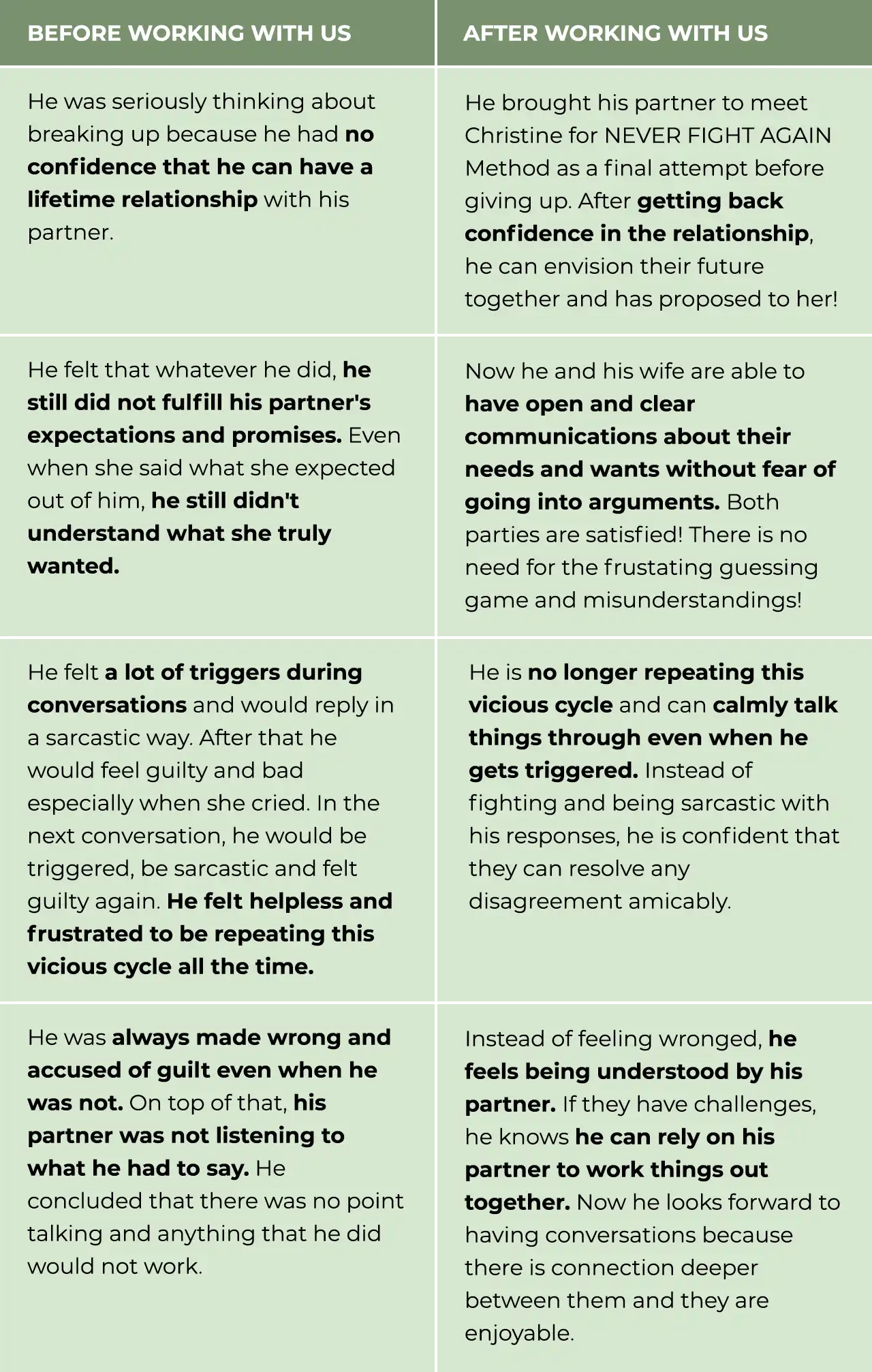“I remembered asking Christine is it possible to work on the couple relationship if only one spouse came and Christine said the spouse that comes is usually the one who is the main cause of the relationship and after coaching I fully agree 👍🏼 “
